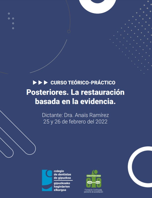 Curso de formación los próximos días 25 y 26 de febrero – «Posteriores: Restauraciones basadas en la evidencia»